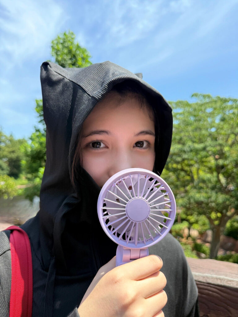 ②外を歩いてたら多くの人が持ってる、ミニ扇風機!