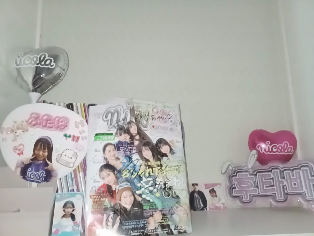 「まず、撮ったチェキはデコったケースにしまってます!プレゼントでいただいた表紙ポスターも壁に飾ってあります!!ニコラ大好きなのが部屋からも伝わってくるくらいにはオタク部屋です笑笑笑ウォークインクローゼットの半分くらいはかわいい推したちであふれてます♡」(中3)