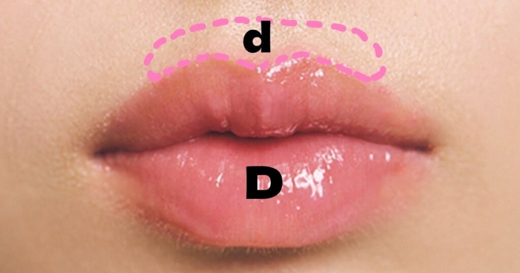 ④<リップ>ツヤツヤのDグロスは、くちびるの山よりも少しオーバーめに。山の上にd でハイライトをのせれば完成☆
