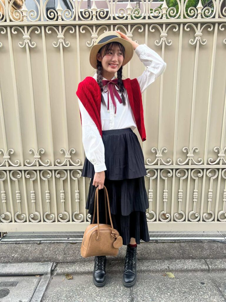 コーデは、イメージカラーの赤を入れて、髪型は三つ編みお下げにして、そばかすメイクもして、「完全私はアン・シャーリー❤️」という気持ちで行きました!