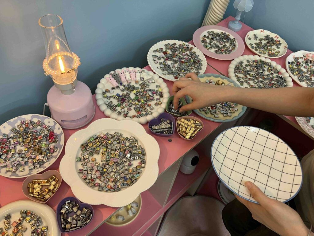 韓国っぽくてかわいい店内で楽しむアクセサリー作り♩イタリアンチャームの他にもかわいいアクセサリーチャームを作ることができるよ!みんなもぜひ行ってみてね!