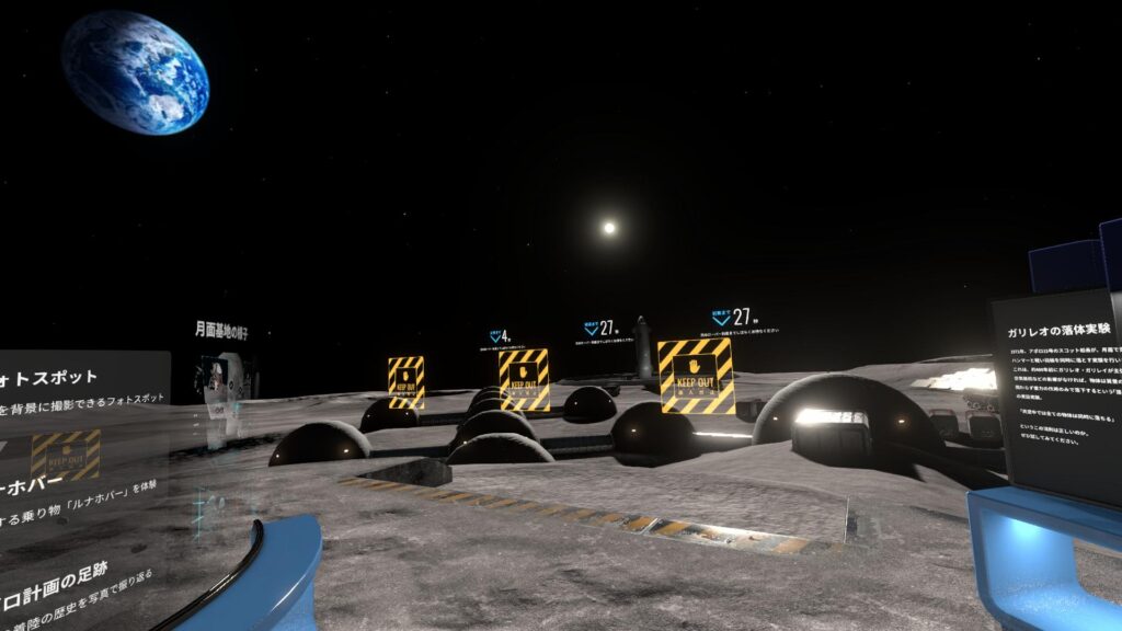 未来の宇宙旅行を体験できるSORAVEL LINEでは、自分で歩いて月面を探索することができるよ!VR上で写真撮影も可能!撮った写真はスマホにダウンロードして思い出に残すことができちゃうよ!