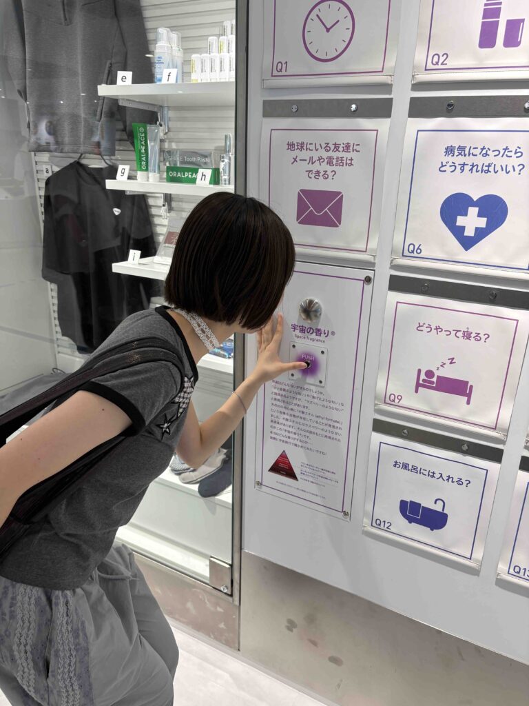 エントランスを抜けるとまるで異世界?!宇宙港内のトラベルセンターがモチーフの’’スペースターミナル’’では宇宙の匂いや、音を体験できるよ。月や、宇宙の香りを体験できたり、火星の風の音を聴けたり、ここでしかできない貴重な体験が盛りだくさん!
