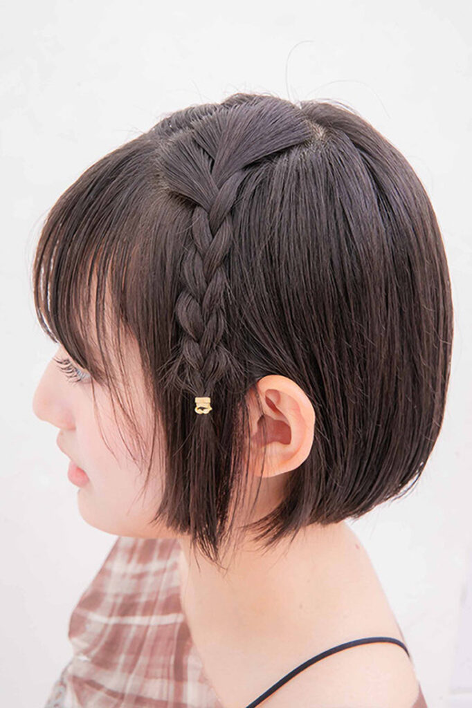2.耳前にたれるようなみつあみがかわいい♡反対側も同じように作って。
