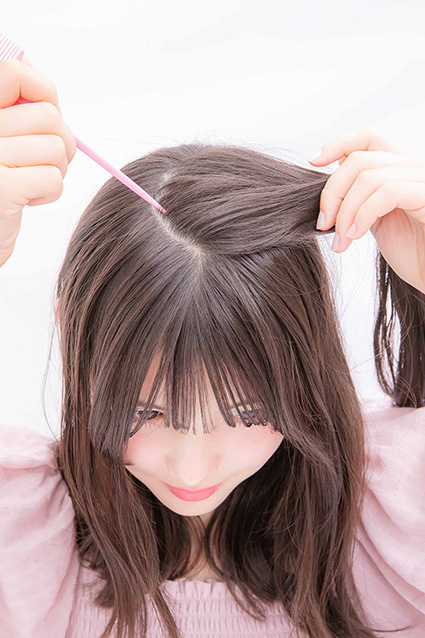 1.髪をを抑えればる。後ろはわけ目が目立たないようにジグザグに取ろう。