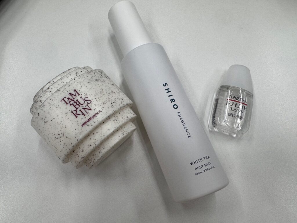 YUKI:僕は、ひとつめが目薬ですね、ふだんコンタクトをしているのですごいドライアイなんです。だから目が乾燥するなぁと思うことも多いので、持ち歩いています。ふたつめはハンドクリーム!手も乾燥しやすいので、気になったらすぐに保湿したいんです(笑)。香りはサボン系で、ふわっと香る感じもお気に入りです。最後は、ボディミストです。リフレッシュしたいなぁと思ったときにシュシュッとふるとすごくいい香りがするので気持ちが切り替わります。これもサボン系の香り!僕、石鹸の香りって大好きなんです!