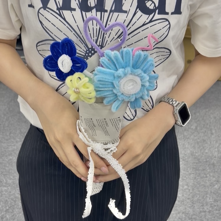 トレンドの韓国っぽモールフラワー、意外と簡単に作れることが判明!かわいくて目立つから、文化祭のヘアアレやスクバにつけるキーホルダーとして使うのもおすすめ☆