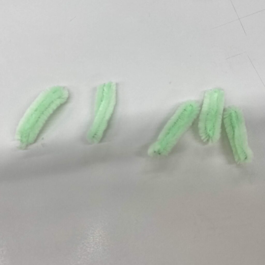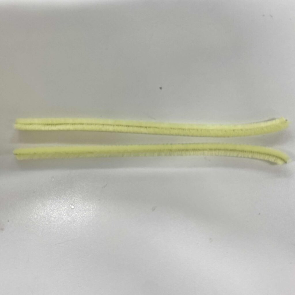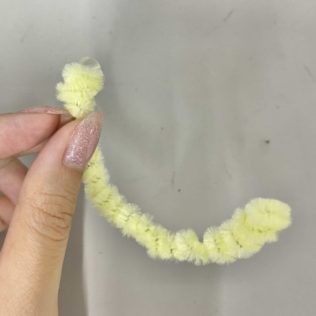 用意するもの:白のモール×1本、白以外のモール×8本、緑のモール×1本(30cmのモールを使用したよ!)、ペン、グルーガン