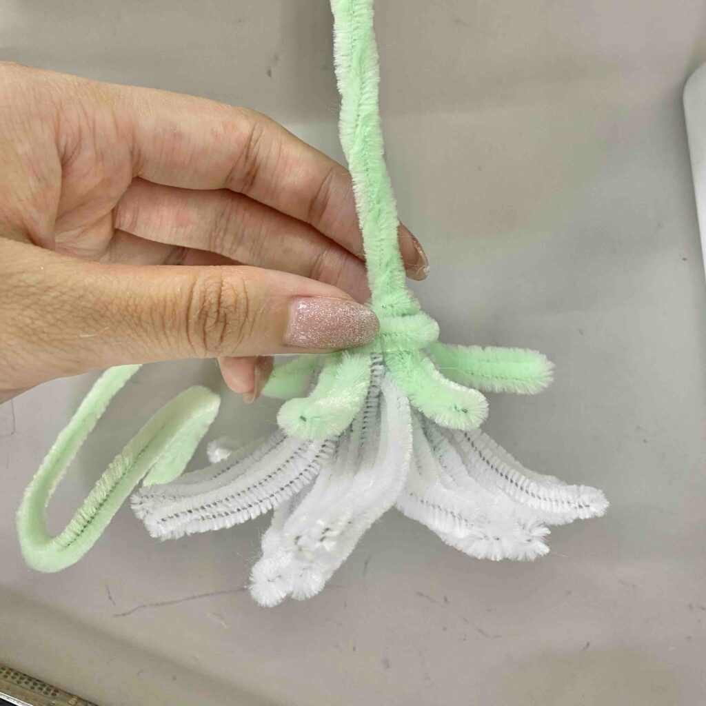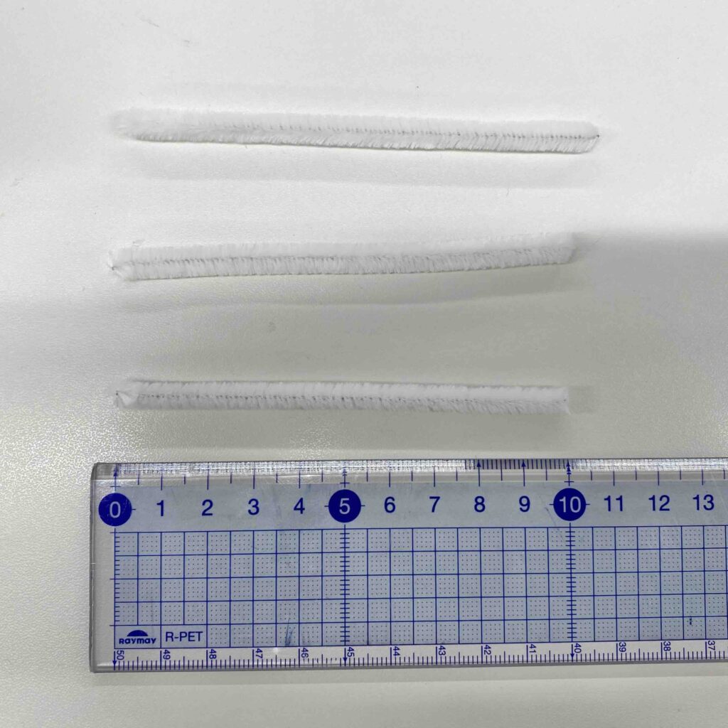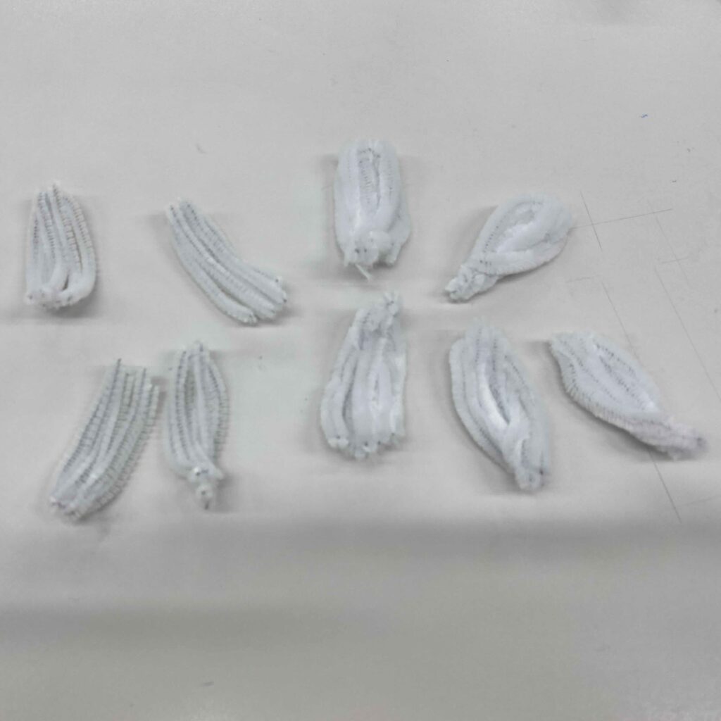 用意するもの:白のモール×1本、白以外のモール×8本、緑のモール×1本(30cmのモールを使用したよ!)、ペン、グルーガン