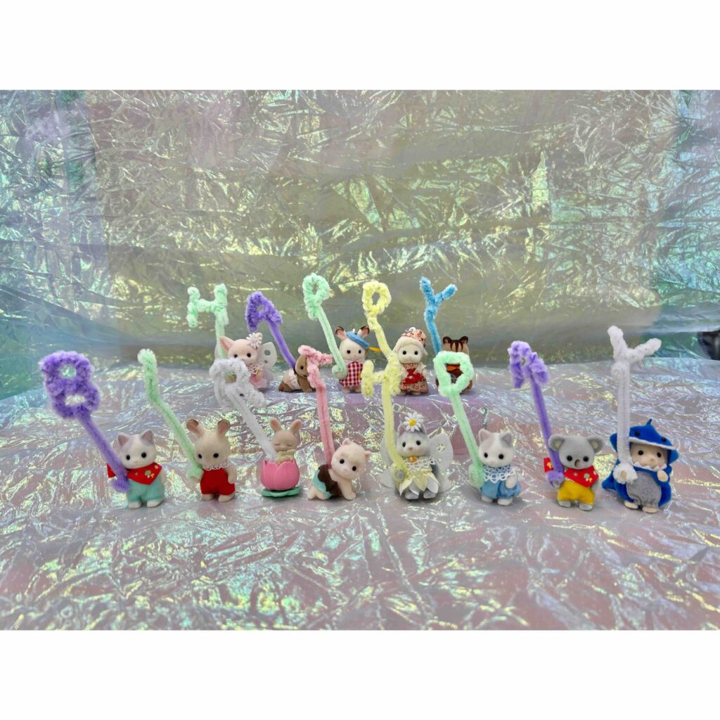 シルバニアファミリーにやぬいぐるみに持ってもらう場合は、持ち手の部分を長めに残して、端を丸めておくのがポイント!