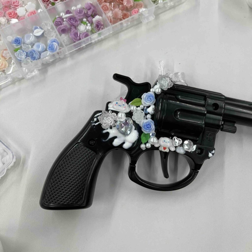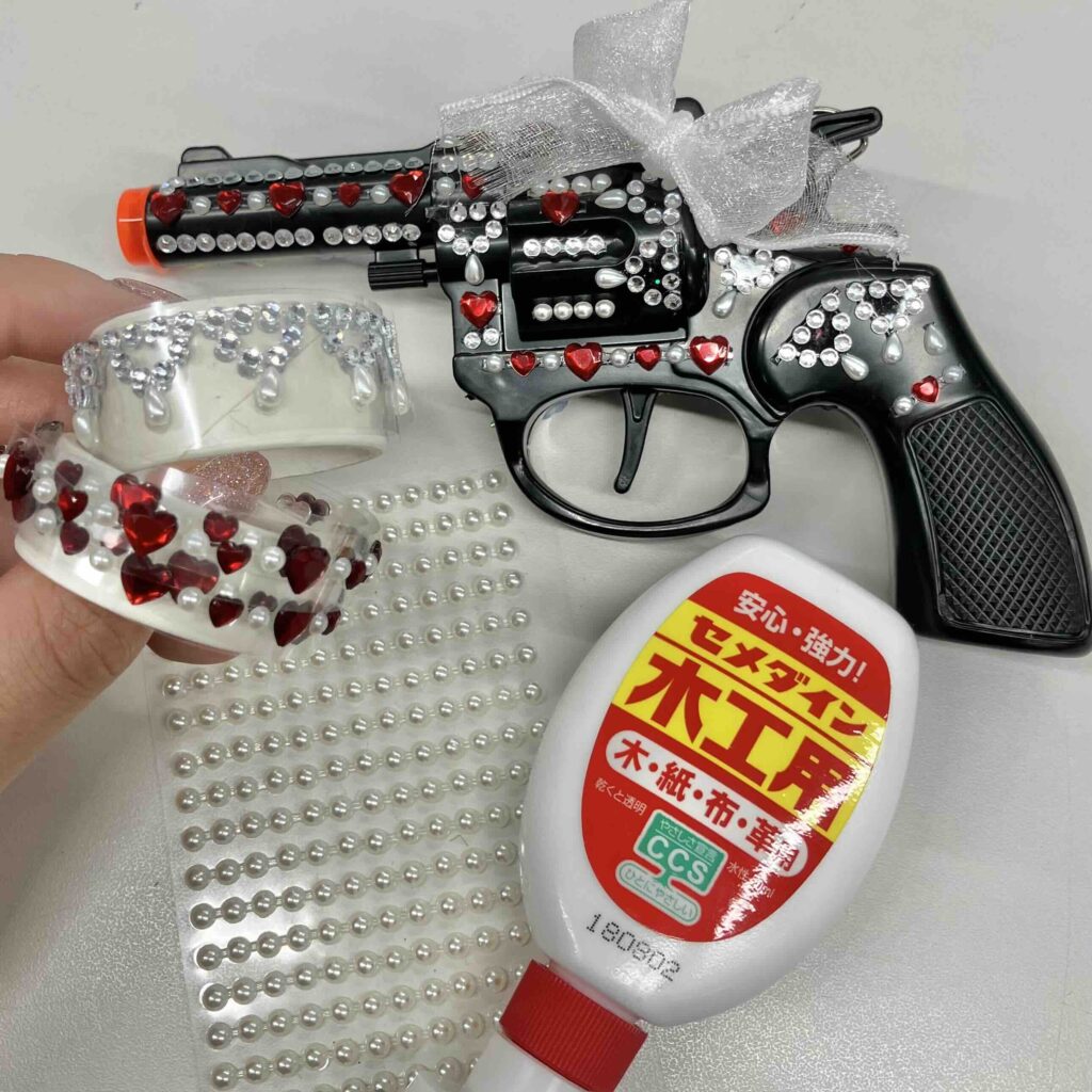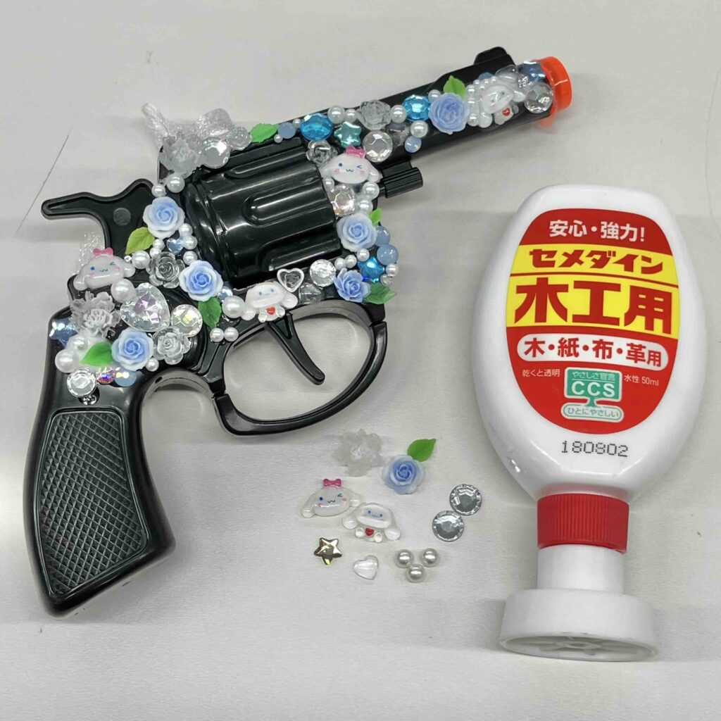 用意するもの:おもちゃのピストル、デコパーツ、ボンド