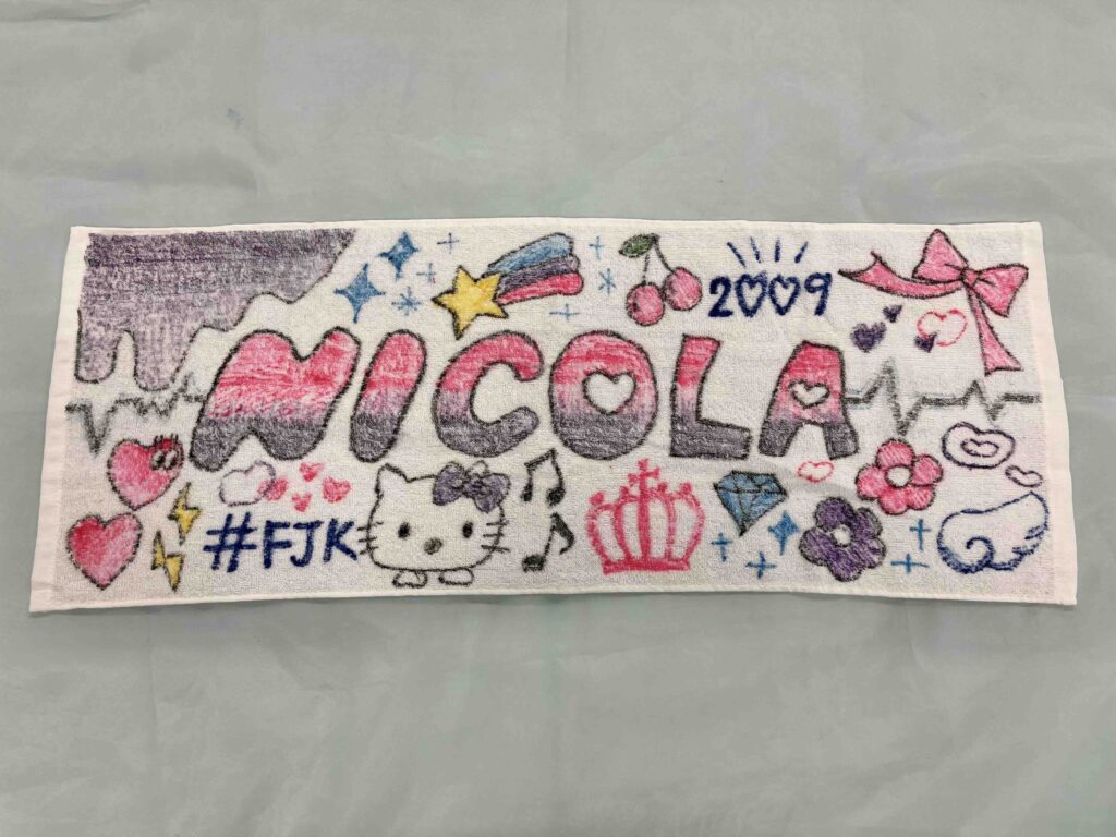好きなモチーフやキャラクターを描いて余白をデコれば、かわいすぎるデコタオルの完成!学年や生まれ年を入れると現役感アピれて素敵!!