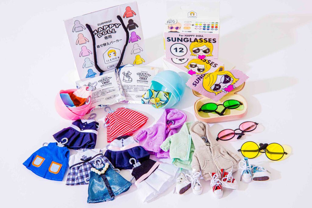 ヒヨリのドール☆着せ替えパーカ¥1320、着せ替えドレス・ブラック¥500、サプライズ・サングラス¥1430、着せ替えスニーカー¥1320/イルメール ソノマのドール☆着せ替えパーカ¥1320、着せ替えドレス¥500、サプライズ・サングラス¥1430、着せ替えスニーカー¥1320/イルメール ※すべてブラインド商品です。中身を選ぶことはできません。