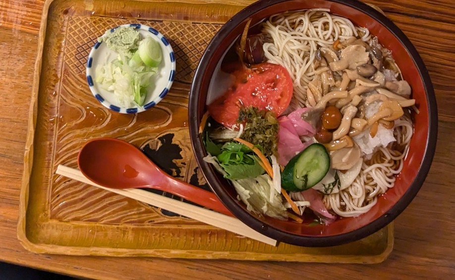 野菜たっぷりで、麺というよりほぼサラダ!タレはたくさんかけずに、野菜そのものの素材の味を楽しみます。