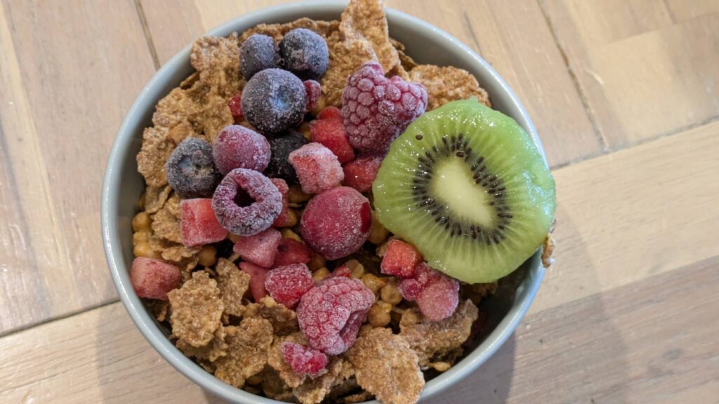 手作りグリークヨーグルト♩シリアルやフルーツ山盛りで満足感UP(まるごとキウイは見た目も◎)!