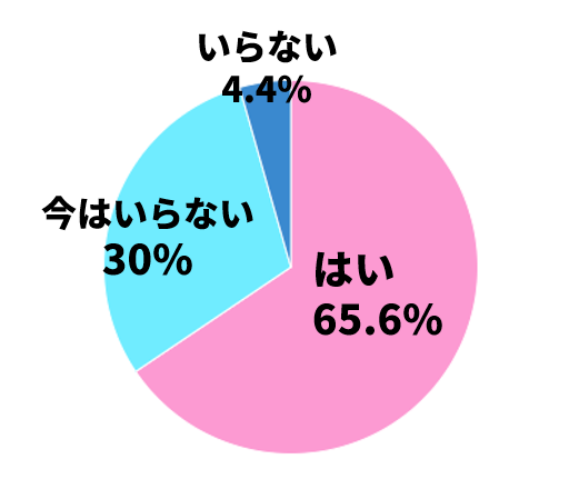 「今は恋人がいない」と答えた子に「恋人ほしい?」と聞いたところ、約65%の子が『ほしい!』、30%が『今はいらない』、約4.4%が『いらない』と回答。 多くの子が恋にあこがれる一方で、部活や勉強、友達、推し活を優先する子もいて、それぞれのペースで青春を楽しんでいることがわかったよ♡