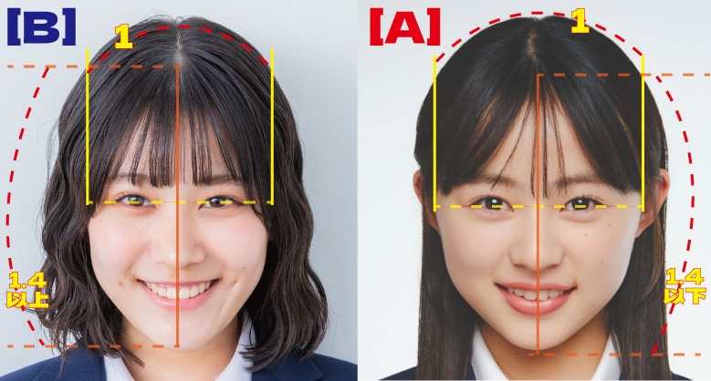 A.黒目上を通る顔の横幅を1とするのに対し、生え際からアゴ先までの縦幅が1.4以下