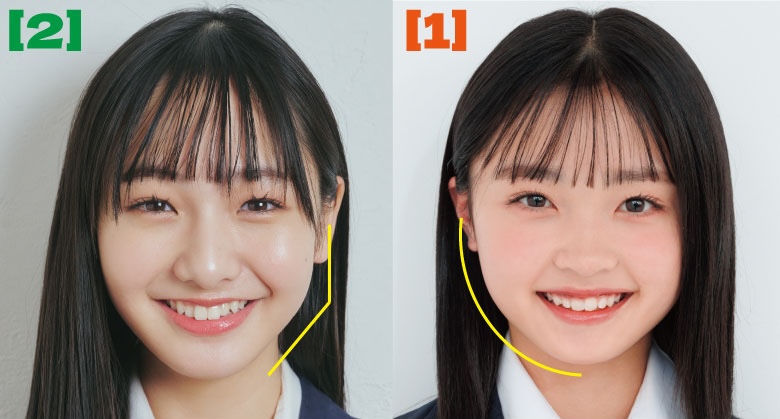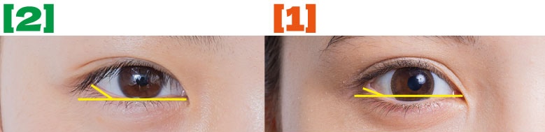 2.目頭と目尻を比べると、目尻が上がり気味(10度以上くらいが目安だよ!)