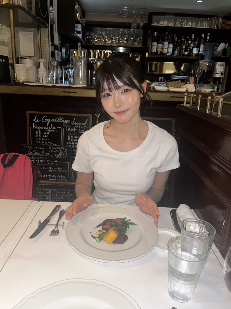 お母さんと、ニコラの撮影の後フレンチレストランに行った時の写真だよー。おしゃれすぎて緊張しちゃったー♡