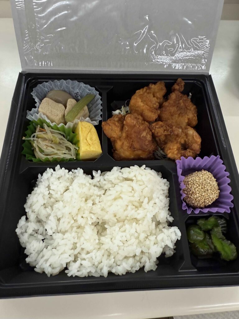 「LIVEの日は昼ごはん2つ食べる派です!この日は唐揚げ弁当とお魚弁当!」