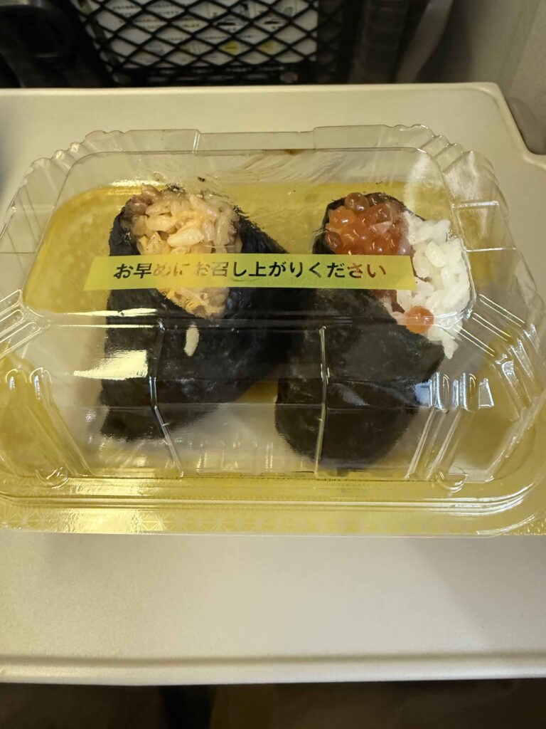 「朝ご飯はおにぎり!公演が宮城なので、新幹線の駅内で買いました!朝は米派!」