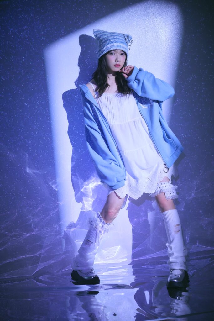 消えちゃいそうな儚さのみず色がドリームコアのキーカラー。組み合わせる色も、白やグレーの淡色でまとめて、世界観をつくりあげて。