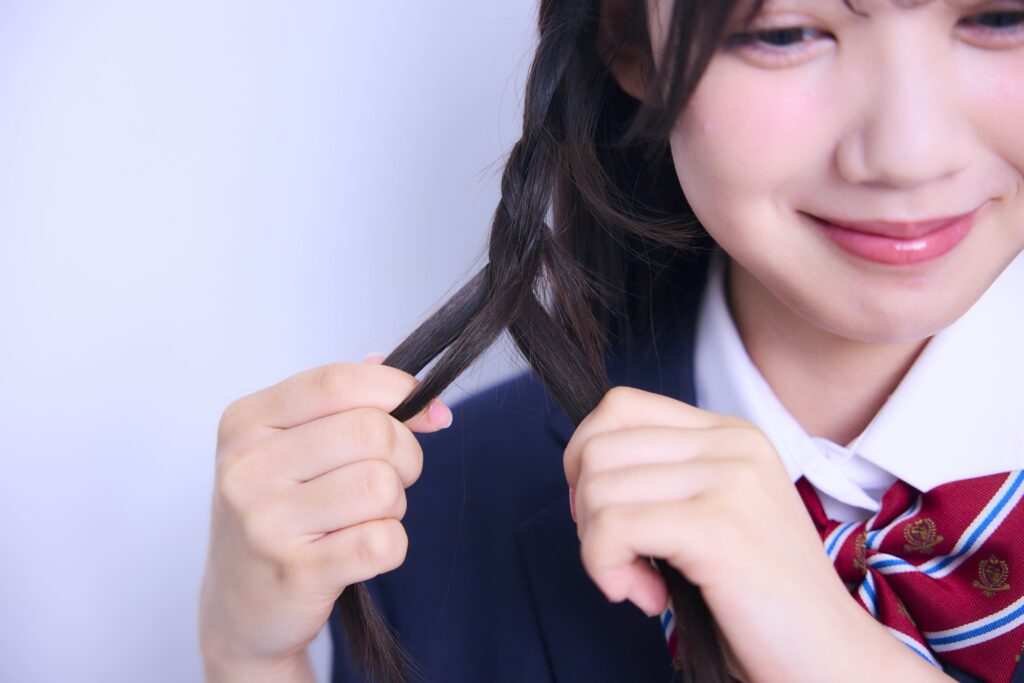 大人なローポニーにみつあみを混ぜるだけ!ただ結ぶだけじゃなくて、+1することで一気に可愛くなるからおすすめだよ!