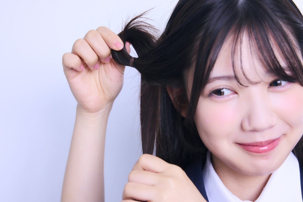 ②ゴムの上に少し穴を開け、その中に毛束を通してくるりんぱ!