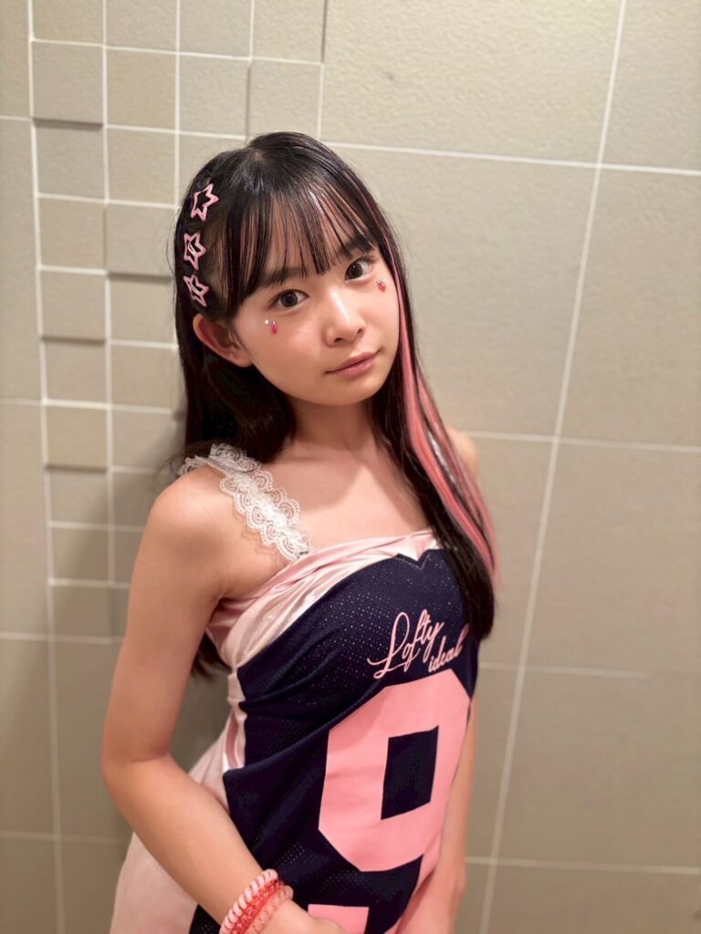 後ろで袖を結んで、ワンピース風にアレンジ💡