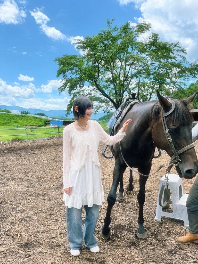 乗り終わった後です。この子は道草をよく食べて可愛いです