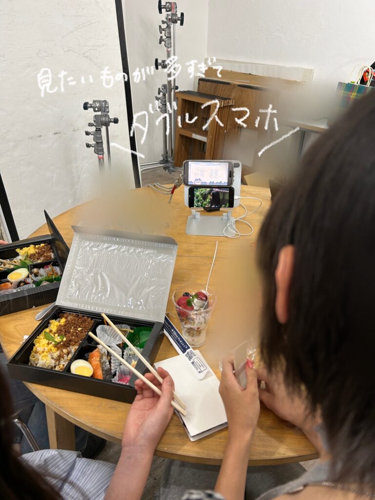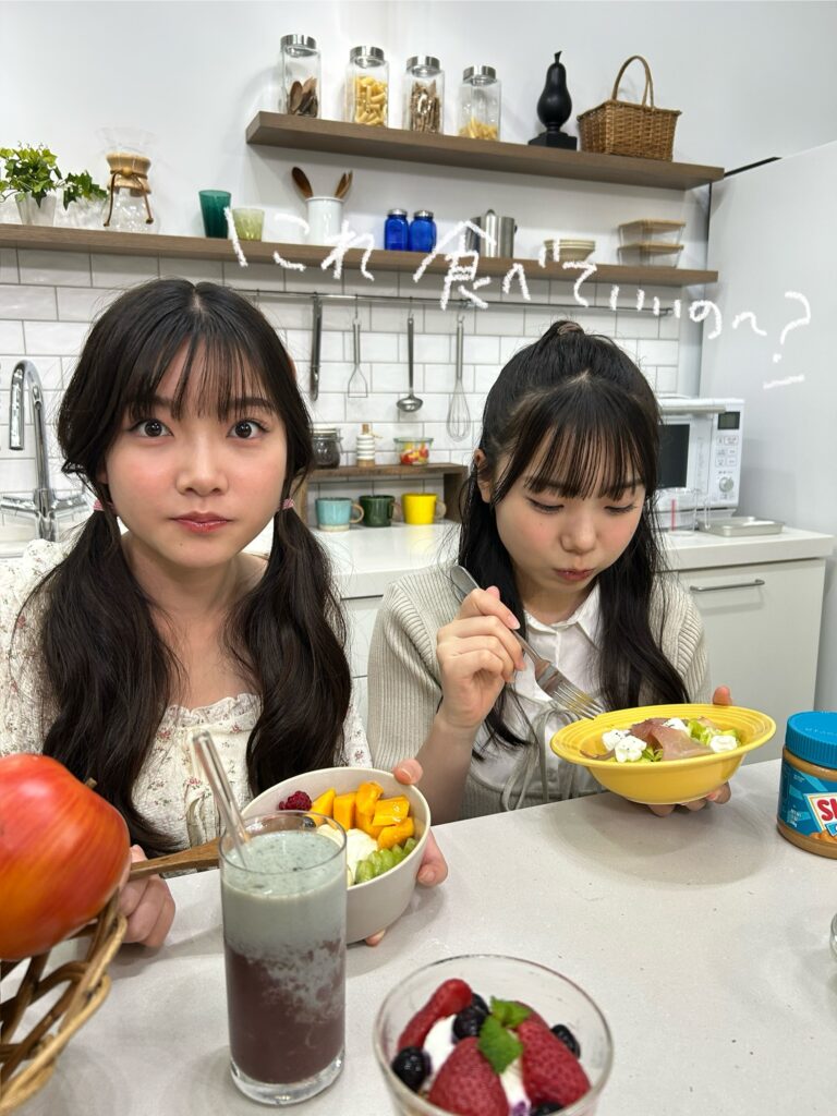 朝食企画はアサイー&グリークヨーグルトがテーマ!つまみ食いにWスマホに、待ち時間にも個性が出てたよ!できたお料理は撮影終わりには完食していました♡元気いっぱいのりんくるは、スマホで撮影中かと思いきや、ミラーの前でわちゃわちゃ(笑)。本日もらぶらぶでした♪