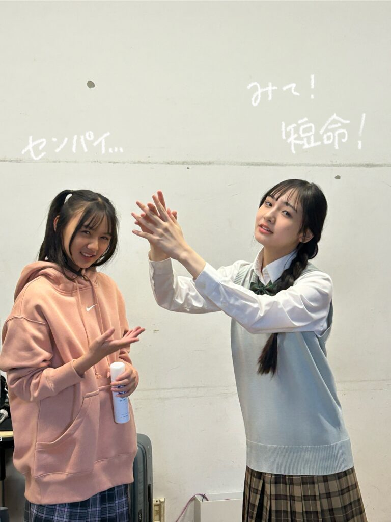 地元服はスポがテーマ。みんなのテンションもいつもよりアクティブになっていたよ!出入口付近での撮影中には、撮影を見に来たリコ、ヒヨリが映りこむというハプニングも(笑)。終始笑顔いっぱいな撮影でした♡