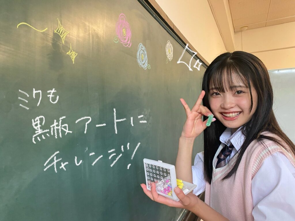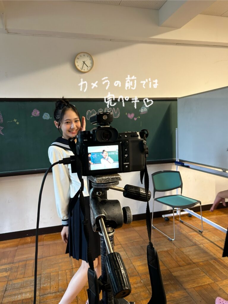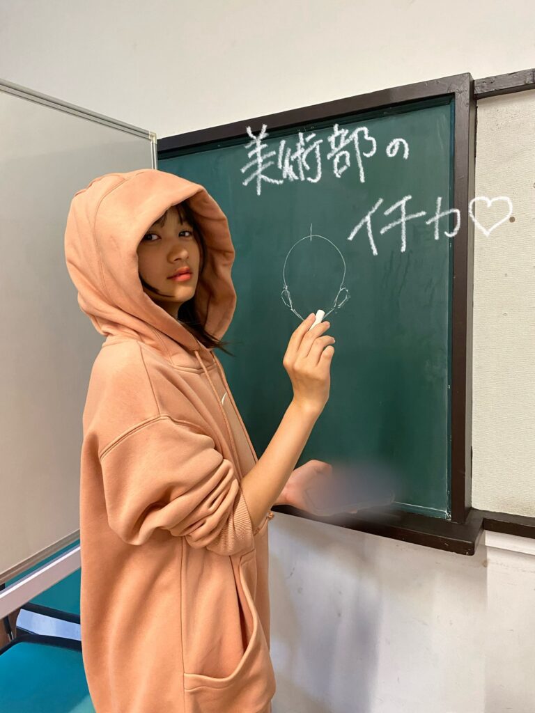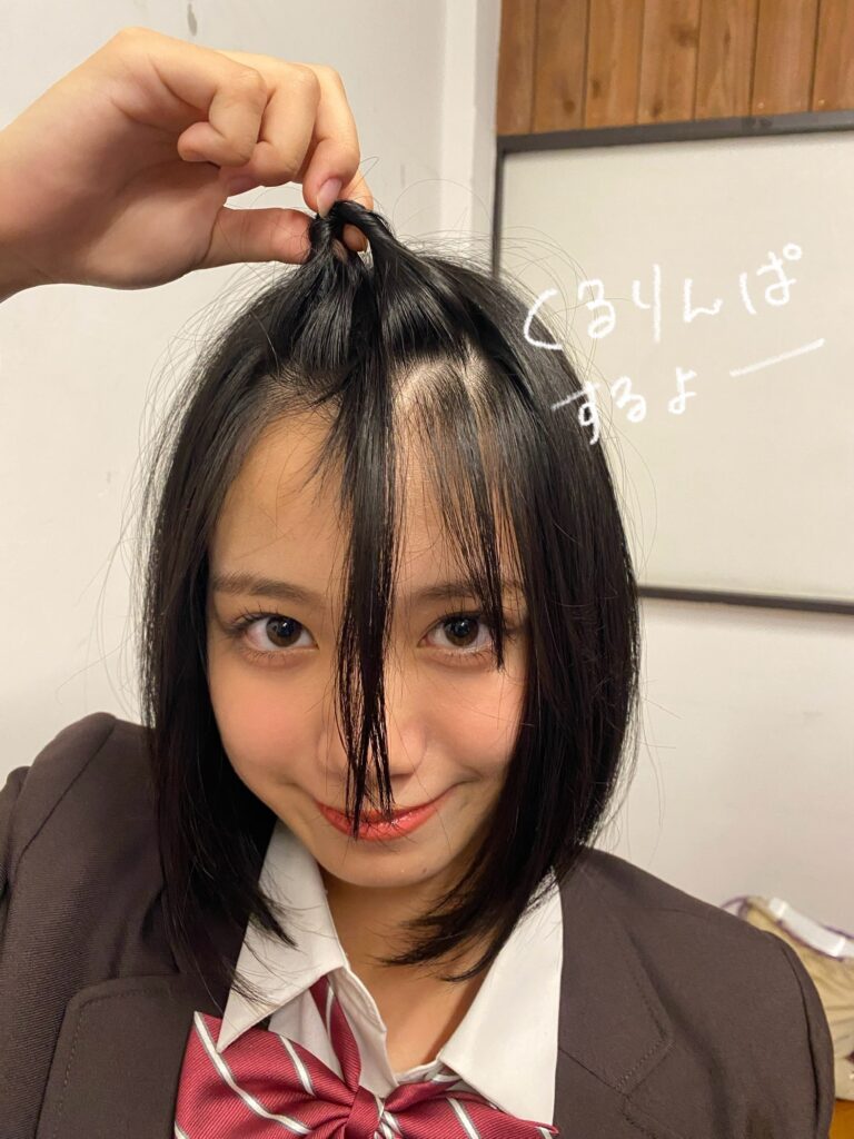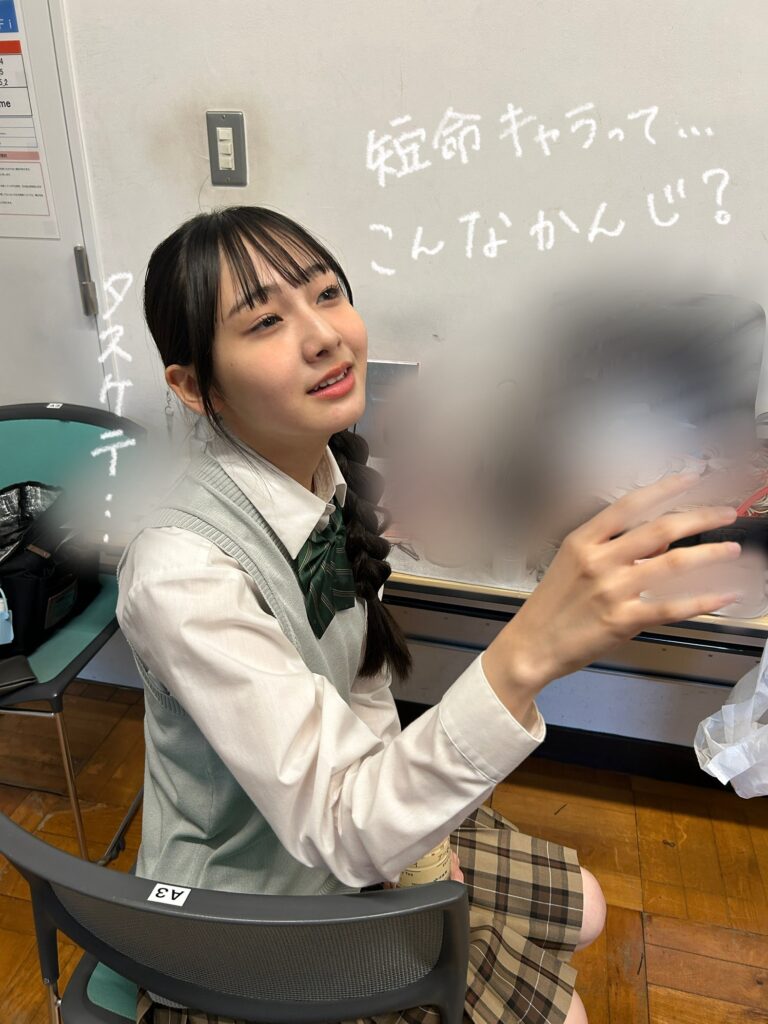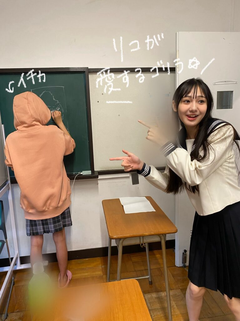 ヘアアレを撮影したこの日、リコのテンションが絶好調! 短命ヘアでは短命キャラをノリノリで演じ、黒板をフルに使ったゴリラの黒板アートを披露してくれたよ! もちろん、モデルとしての技術はピカイチ☆ そのギャップがリコの魅力だよね〜♡