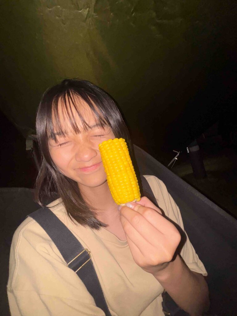 他にも、手作りのおいしいにんじんドレッシングのサラダとか、焼き鳥とかマシュマロとかたくさん食べたよ!