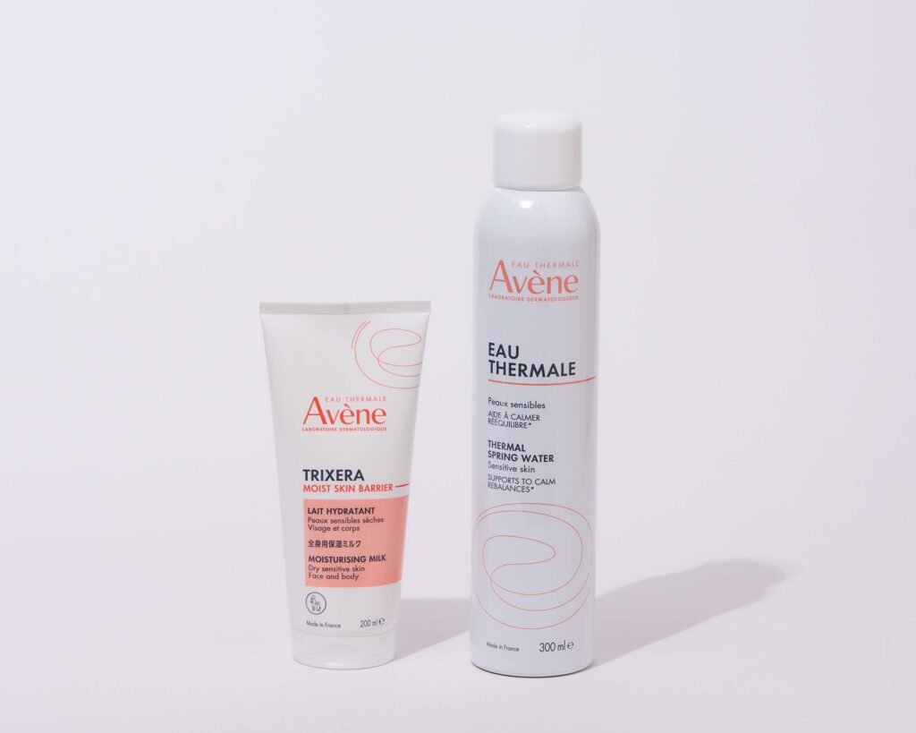 (左から)アベンヌ トリクセラ モイストスキンバリア ミルク 200ml/¥3740、アベンヌウオーター 300g ¥2420 ※ともに編集部調べ/ピエール ファーブル ジャポン