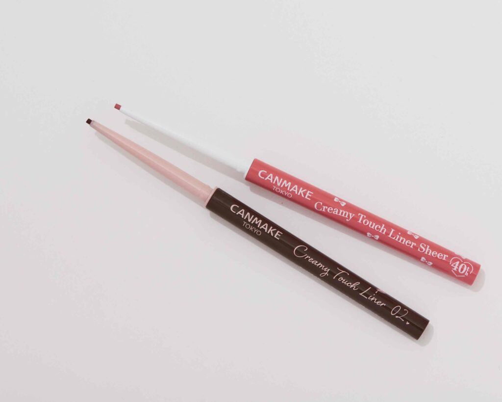 (左から)キャンメイク クリーミータッチライナー 03ダークブラウン、クリーミータッチライナーシアー 40th トゥルーレッド 各¥715/井田ラボラトリーズ