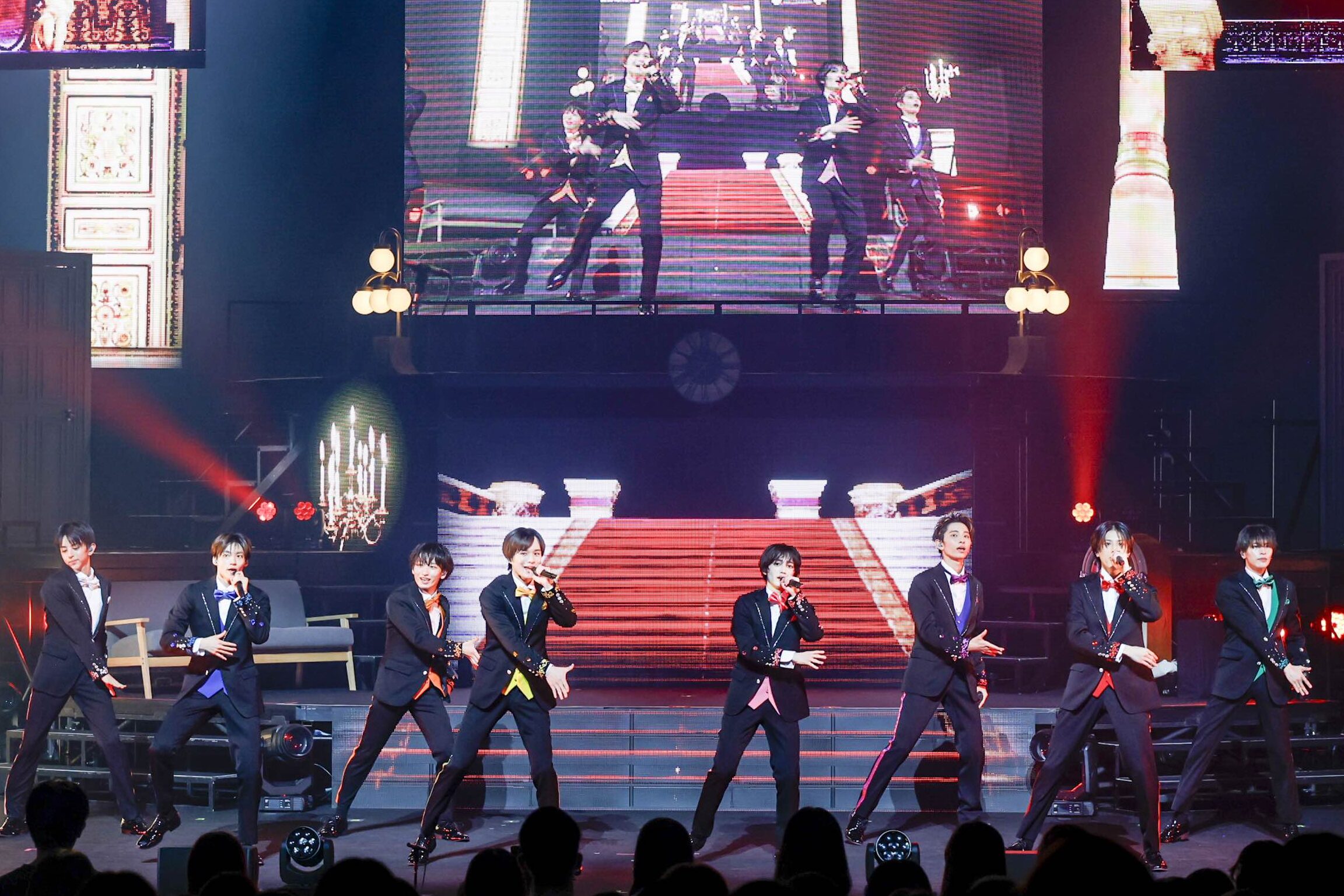 李玖くんが投げチューをしたり、世梛くんが龍人くんをおんぶしたりと、胸きゅんな見どころがたくさんだった「Maniacs」でライブパートが再開すると、続く「理想郷」でメンバーは“僕ん家”を飛び出し、街中へ。そして次に披露されたのは、渋谷での待ち合わせを歌う「シブヤ 午後6時」。2組にはぐれてしまったメンバーが、再び映画館で待ち合わせの約束をするというステージ上のストーリーと、午後6時を過ぎた渋谷区宇田川町の現実世界とが交錯するなんとも粋なセットリストで、物語の舞台は会場全体へと広がっていく。