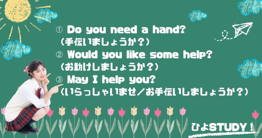 ① Do you need a hand? (手伝いましょうか?)
