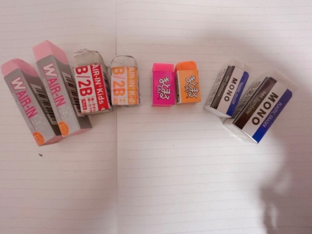 普通に使いかけの消しゴムで、きれいじゃないけど。。。💦