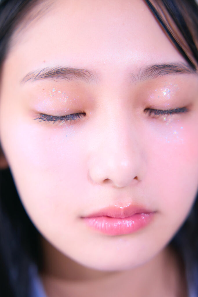 シンプルな中にグリッターのキラキラが映える“ルミナスアイMAKE”。ナチュラルなのに印象的なアイメイクで、みんなトリコになっちゃうかも♡