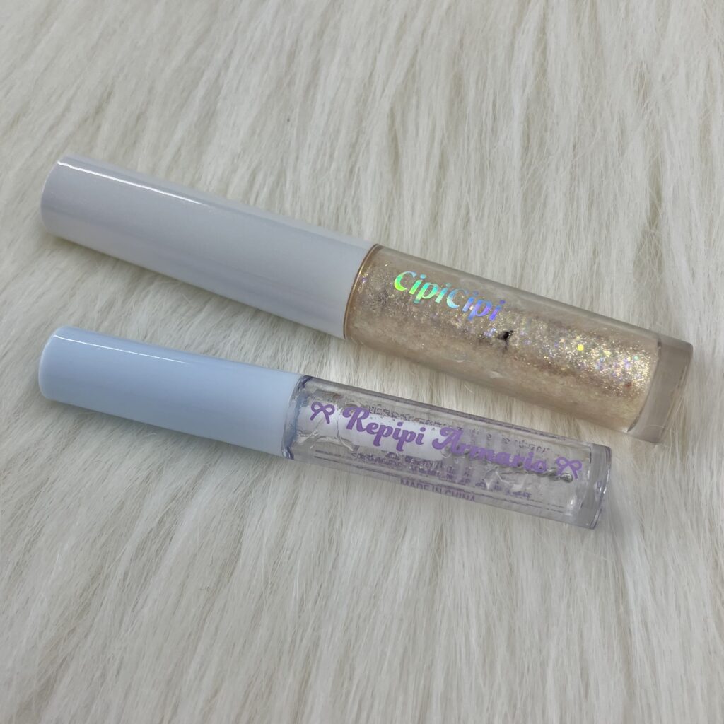 ふろくのクリアマスカラとCipiCipiのグリッターを使用。グリッターは大粒のホログラムやラメが入ったものがおすすめ!