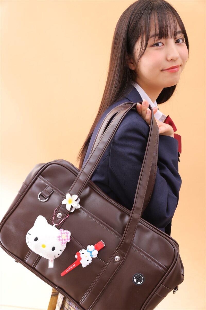 平成風にサンリオキャラのぬいぐるみキーホとか、修学旅行の沖縄で買ったお花をつけてる!(奈良県・ゆうりんちゃん)