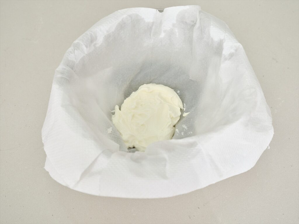3. 6時間で約半量に。水切り時間で固さが変わるので、濃厚にしたい場合は長くおいてもOK!
