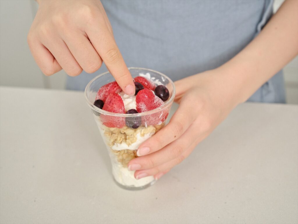 【POINT】パフェの層は一番上がヨーグルトで終わると、フルーツを盛り付けやすくてGOOD☆