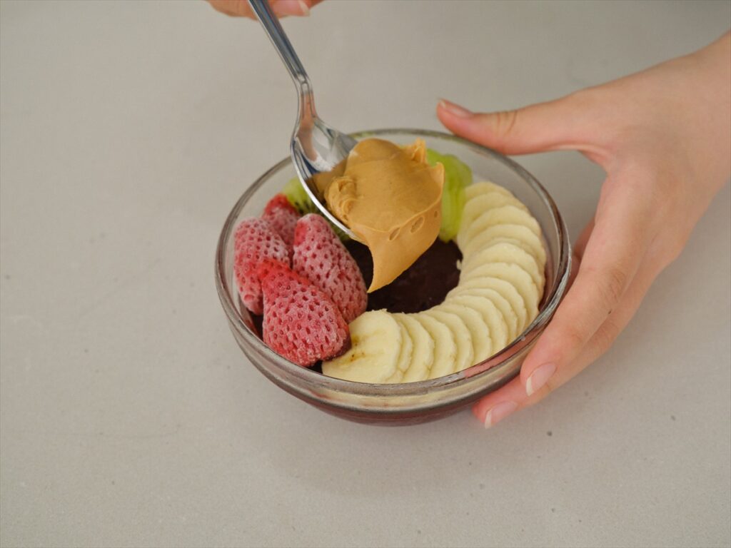 ピーナッツバターはハワイで人気のトッピング。ほのかな塩気がアサイーと相性抜群!