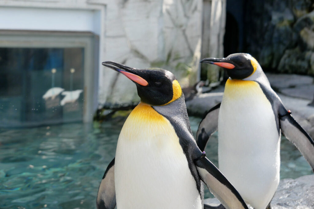 ペンギン!カメラの画質が良いから、ペンギンが身体をブルブルってやった瞬間を狙って撮った📷だからまわりに水しぶきが飛んでるの!