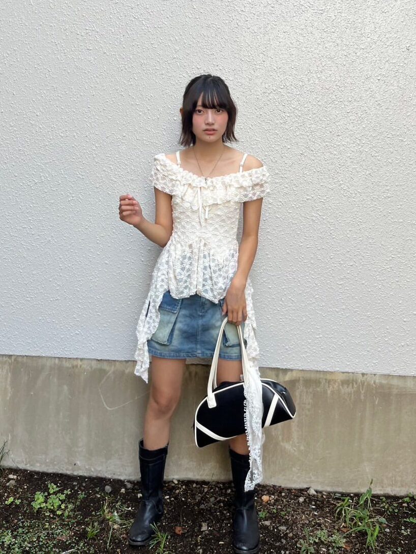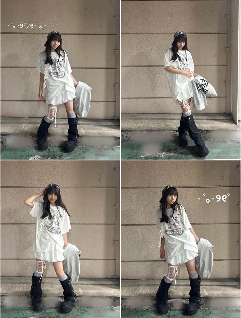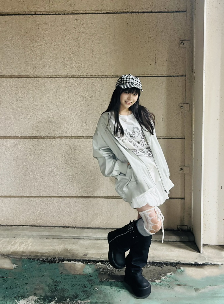 ガーリーが気分のクルミは、レースのあしらいがキュートなTシャツを主役に、ウィッシュコアコーデを黒ブーツで秋らしくアップデート!全体の印象を締めてくれる黒ブーツは、ぽってりとしたボリューム感のあるシルエットがかわいい♡超厚底だからスタイルもしっかり盛れるよ!ギンガムチェックのキャップは起毛素材で、秋っぽさも女の子らしさもプラスできるの♩