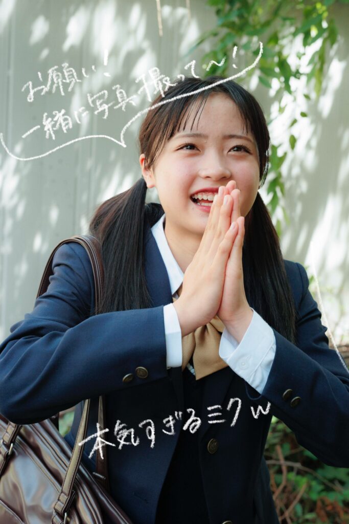 「ケープ&リーゼ」の企画では、一人修学旅行&体育祭を演じたミク。修旅では好きぴに向かってかわいく写真撮ってとお願いしていたはずが、途中から懇願モードに(笑)。文化祭を担当したアンナは、実際に学校の階段を装飾して撮影。束の間の青春を楽しみました♡