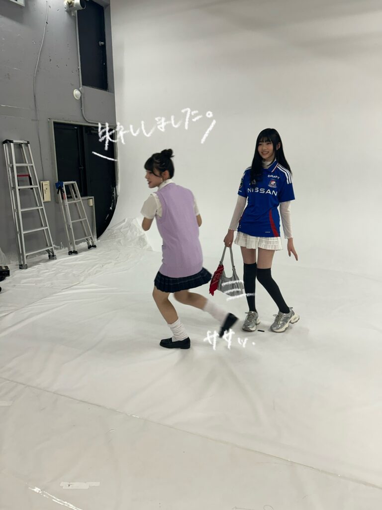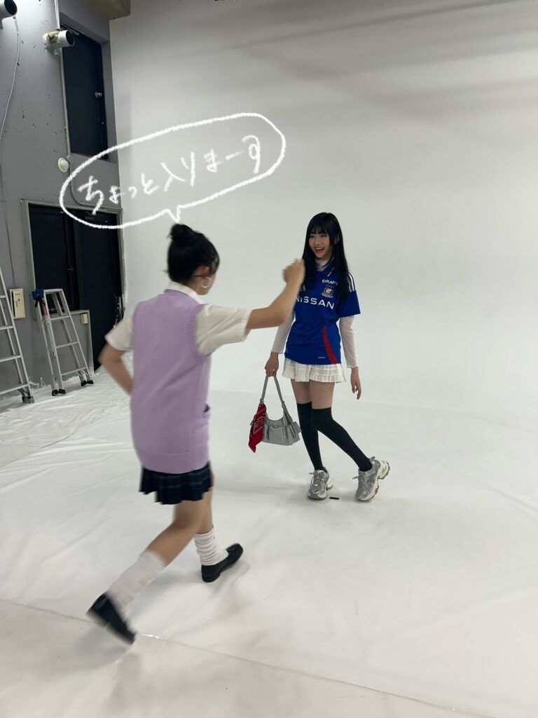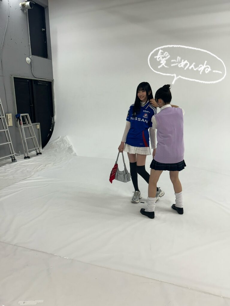 明治安田TU撮影では、サッカーのユニフォームを着用!みんなでサッカー選手になりきりながら、考えて来た私服コーデを披露しました。ヘアアレやメイクが上手と噂のソノマさん。なんとこの日はスタイリスト&ヘアメイクに挑戦!? ルナのカット撮影中に、髪を直したりコーデを整えたり……あまりに板についていて、ベテラン感すら漂っていました!