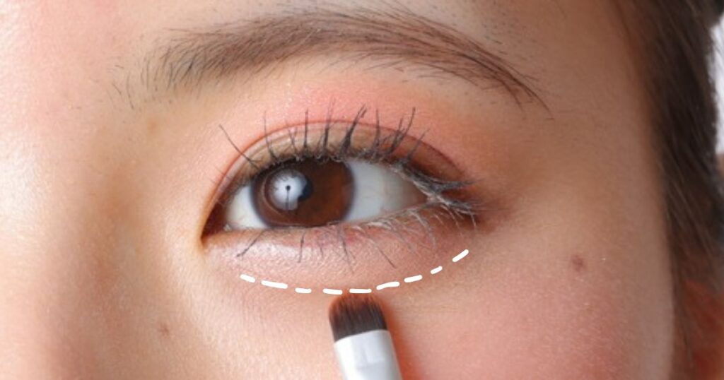 涙袋は黒目下からスタートして、左右ぼかすようにブラシを動かすと涙袋メイクのやりすぎ感を防げる!